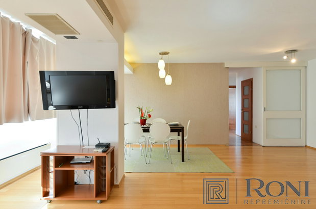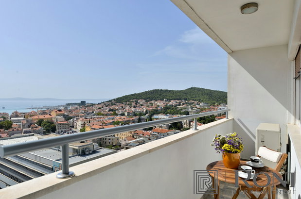 Spacious, completely renovated apartment in the centre of Split. The apartment is offering great panoramic views of the city and the sea. It is located on the 13th floor of a renovated residential building, 400 m from the old city centre and 800 m from the sea. It consists of an open concept living and dining area with a kitchen and a great view of the sea, 2 double and 1 single bedroom, a bathroom and a balcony where you can enjoy in the Mediterranean sun. The apartment is bright and furnished with modern, custom made furniture. It is air conditioned and has floor heating in the bathroom (for additional comfort of its residents).