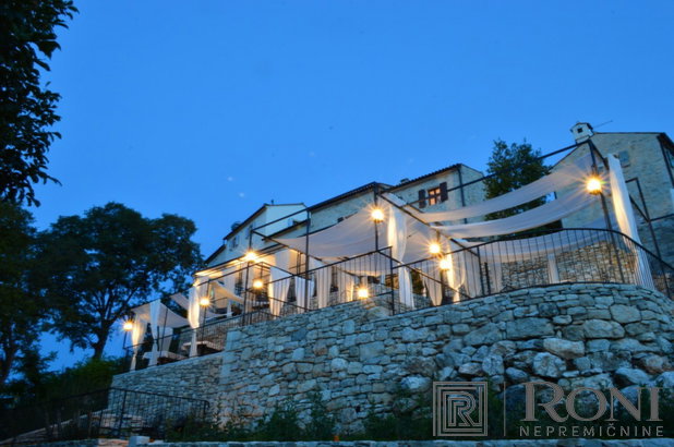 Luxurious villa in a peaceful location in the north-western part of Istria, near the border between Slovenia and Croatia and in the immediate vicinity of the Adriatic sea. At an altitude of 141 meters above the sea level, it is offering stunning views over Sečovlje salt basins and the Piran Bay. Trees surrounding the property contribute to privacy, while a perfect combination of modern design and old heritage make this villa truly unique. The villa is equipped with only high-quality equipment, materials, and furniture. The complex includes: a restaurant, guestrooms, a swimming pool and levelled terraces with a delightful sea view.