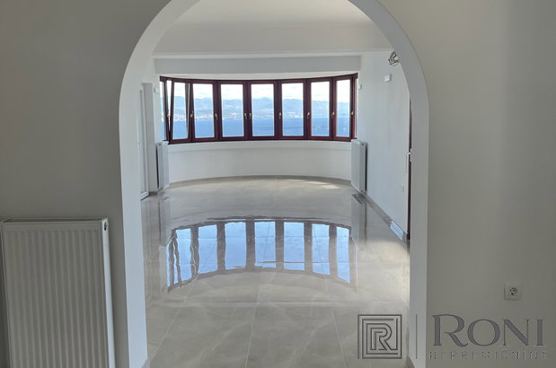 The apartment is located on the first floor of the villa, which has a total of three apartments. It consists of a hallway, a bedroom with a view of the sea, two bathrooms, a bedroom with an exit to a covered terrace and a huge living room also with an exit to the terrace.