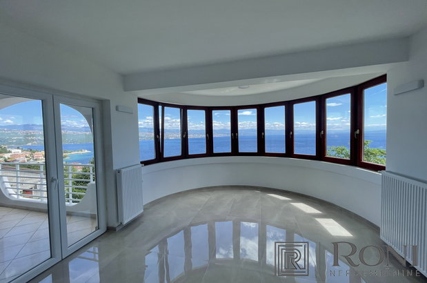 The kitchen is designed in an open space concept, and the dining room offers a panoramic view of the entire Kvarner Bay.