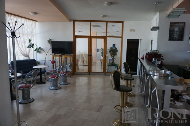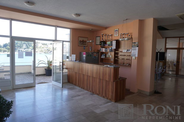 Hotel z neto površino 3200 m2 in s 4 nadstropji, restavracijo, barom s teraso, nočnim klubom, fitnesom, savno, konferenčno dvorano, privezom za manjše čolne in s pogledom na morje, na parceli 4230 m2, v obmorskem mestecu na Hrvaškem.